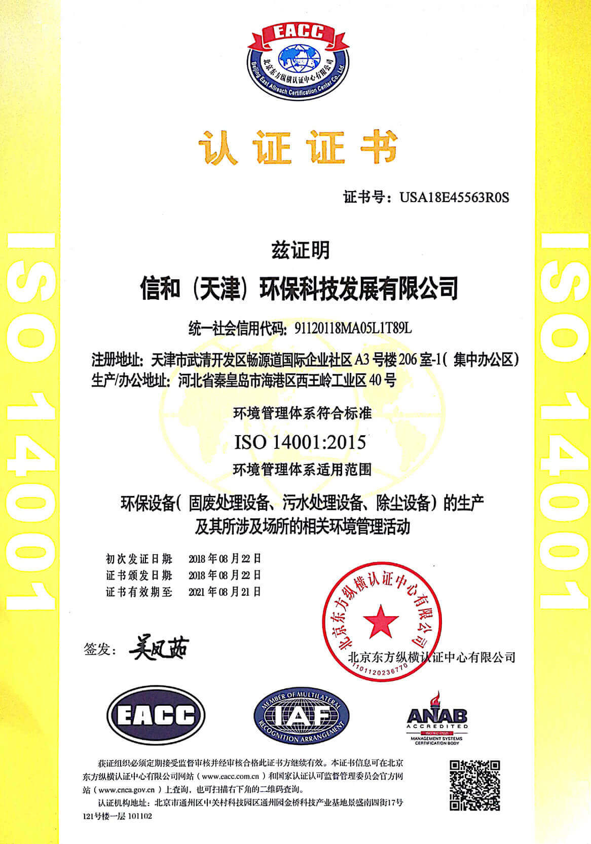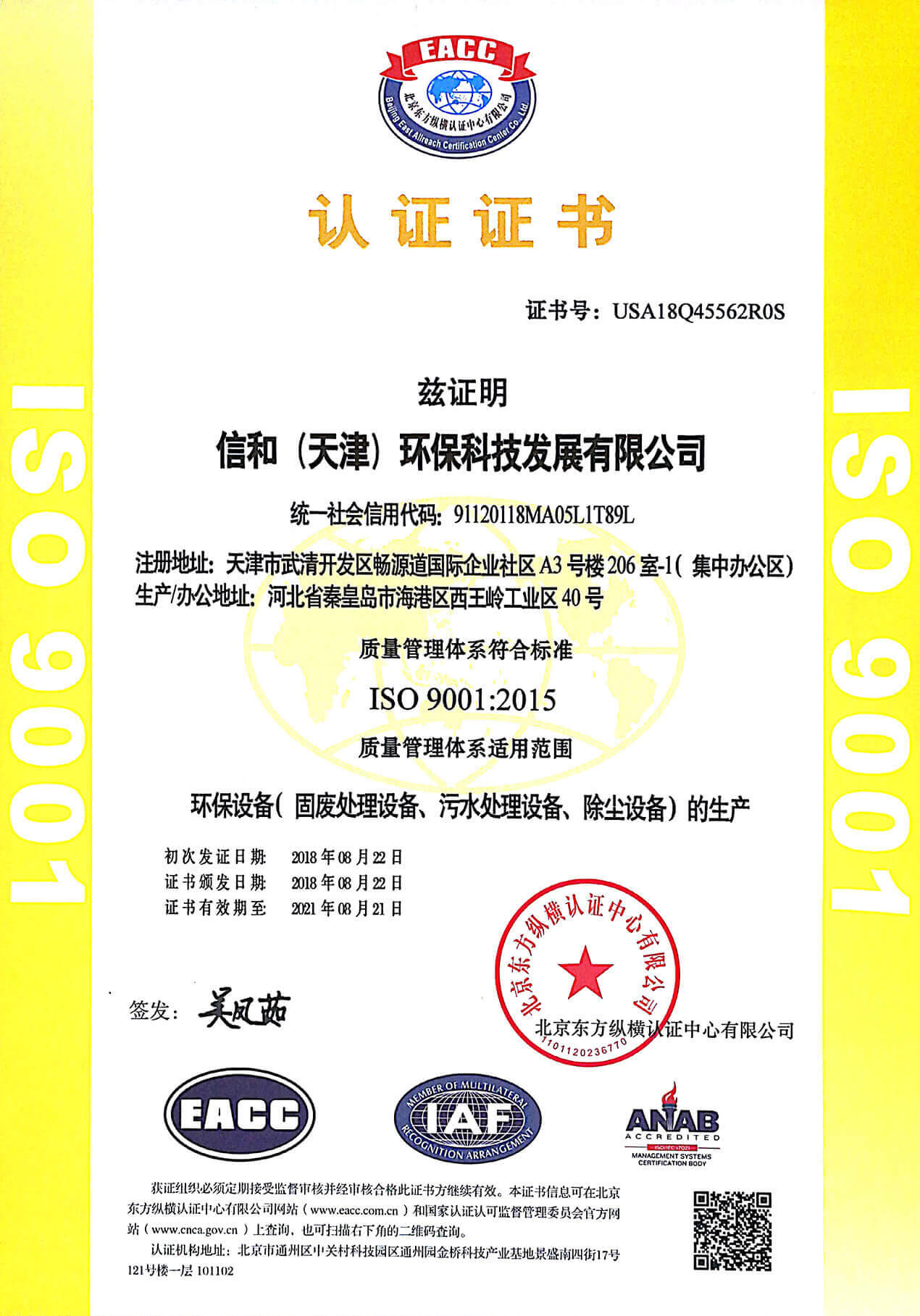 信和(天津)環(huán)??萍及l(fā)展有限公司是一家專業(yè)從事環(huán)保設(shè)備研發(fā)的生產(chǎn)型企業(yè),坐落于天津市武清開發(fā)區(qū),注冊資金2000萬元,擁有≤中華人民共和國進出口企業(yè)資格證≥和≤安全生產(chǎn)許可證≥。公司為《中國環(huán)保產(chǎn)業(yè)協(xié)會會員單位》《中國城市環(huán)境衛(wèi)生協(xié)會會員單位》《中國節(jié)能協(xié)會會員單位》。企業(yè)現(xiàn)有員工168人,其中高級職稱技術(shù)人員65名、1個技術(shù)研發(fā)中心和4個生產(chǎn)車間,擁有國際先進的板材加工中心、激光切割機、數(shù)控沖剪機、等離子切割機等下料成型設(shè)備。