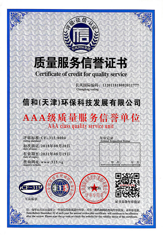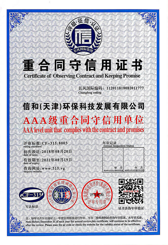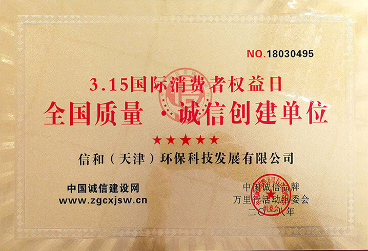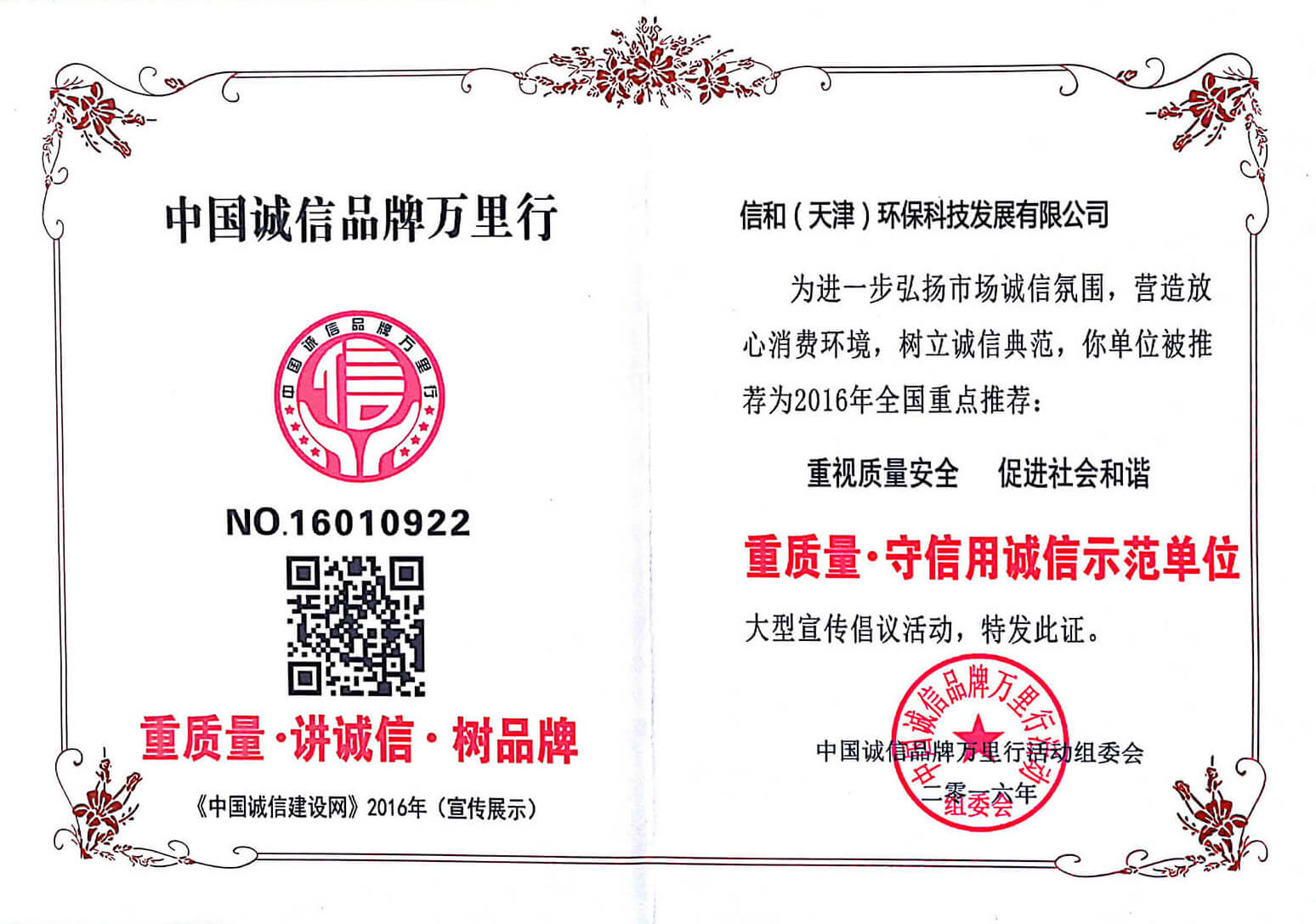 “質(zhì)量就是生命”。信和重質(zhì)量、守信用,被中國誠信品牌萬里行推薦“誠信示范單位”、“AAA資信等級”、“AAA級誠信經(jīng)營示范單位”、“誠信經(jīng)理人榮譽證書”、“誠信企業(yè)家榮譽證書”、“中國產(chǎn)品質(zhì)量放心達(dá)標(biāo)企業(yè)”、“誠信品牌聯(lián)盟會員單位”、“中國質(zhì)量誠信AAA級品牌企業(yè)”、“中國百強優(yōu)秀企業(yè)”、“節(jié)能環(huán)保推廣產(chǎn)品”、“全國科技創(chuàng)新企業(yè)”等榮譽稱號。